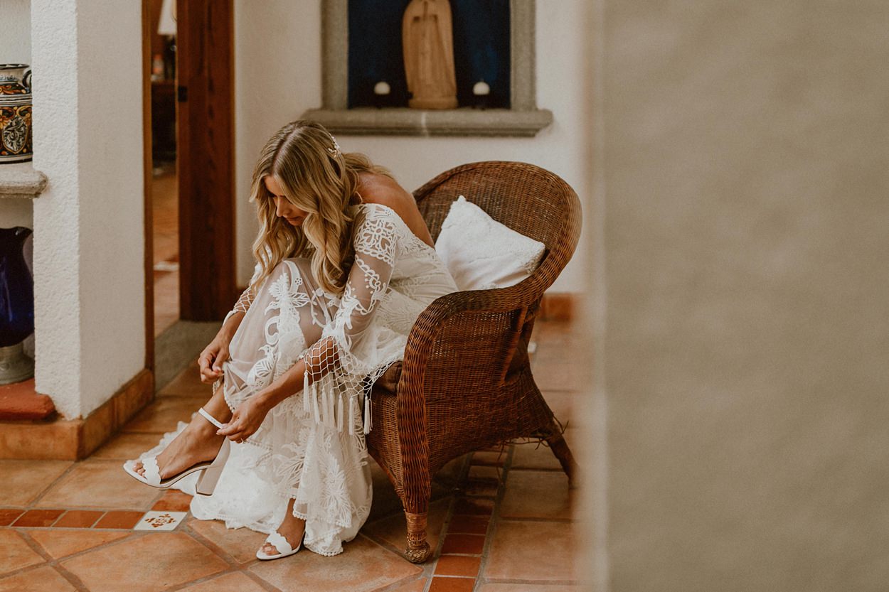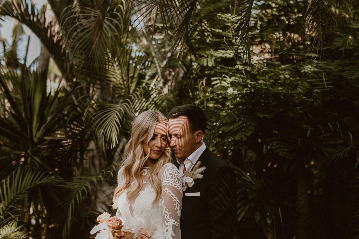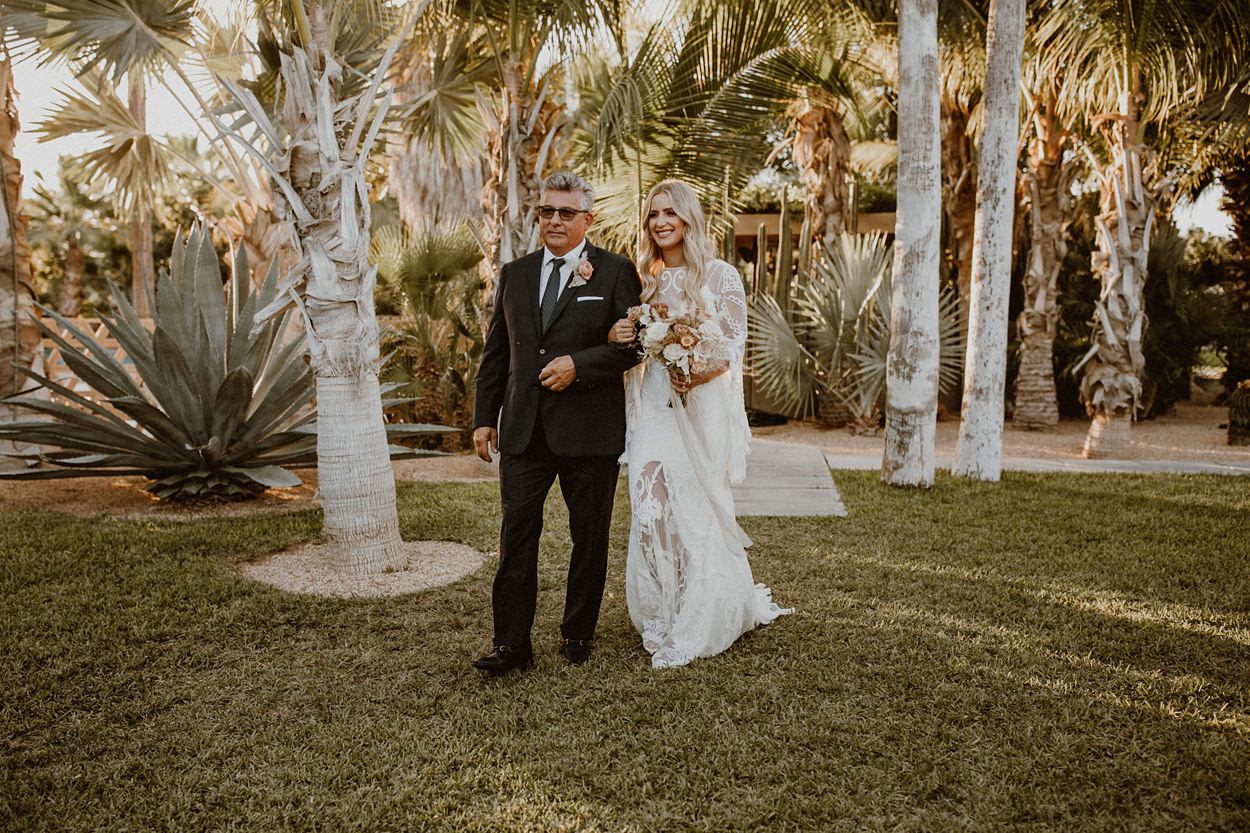 Acre Baja Wedding Photos // Victoria + Payton held the dreamiest boho-rocker inspired wedding at our favorite palm tree oasis in Cabo. We had met up with Vic + Payt prior to their wedding for their engagement session and we quickly learned that their style was on point and their connection was fire. We figured that if their wedding embodied them at all (even 10%), it was going to be amazing. We were right. I mean, they got married under a floral-wrapped teepee at the edge of the palm forest. And at their reception, there was a giant teepee structure strung-up with lights where folks lounged and sipped cocktails under. We just wanted to stay tucked away in the corners of Victoria + Payton’s dream for forever.