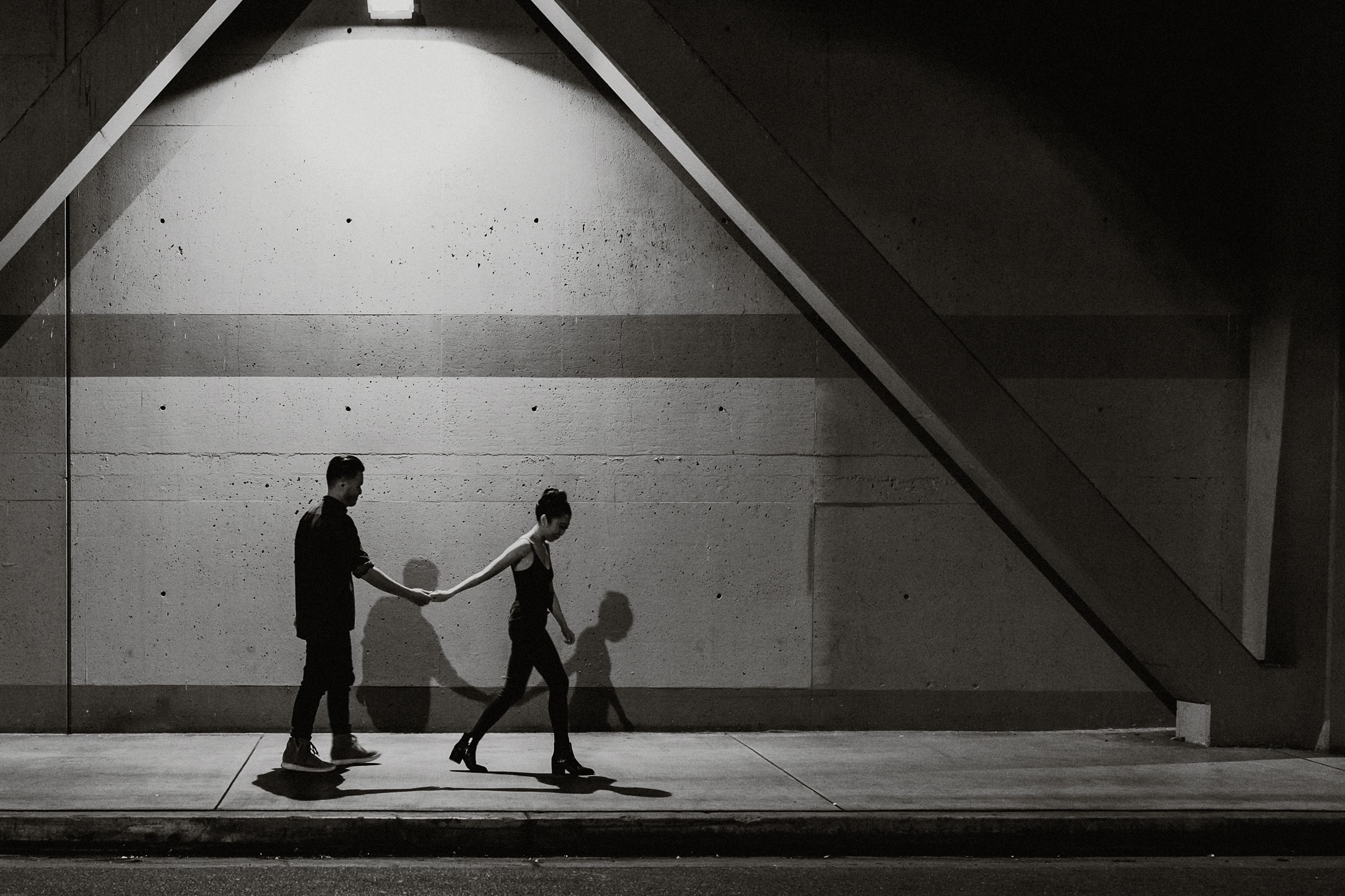 Downtown LA Engagement Photos // We ventured through the more subtle, less routed, and perhaps even the darker parts of Los Angeles with Julie and Jeff. By no means does that mean we thought it was any less lively than our typical sun drenched urban sessions — it was magnificently different and really cool.