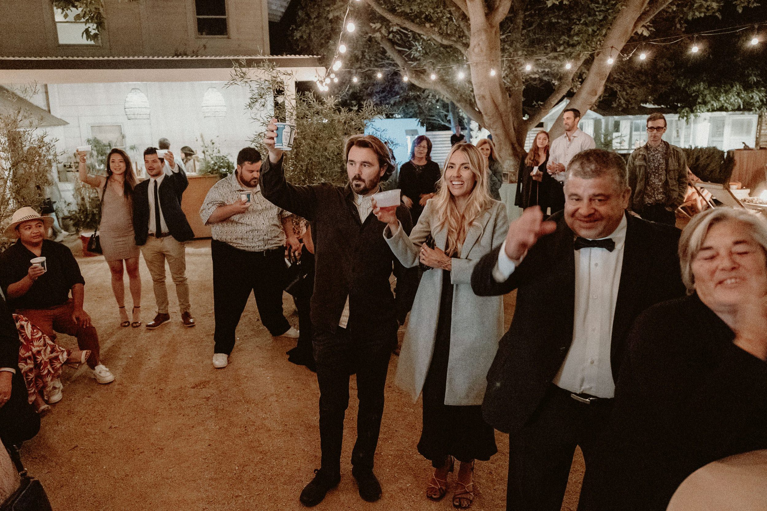 As for the food? Think fresh, unfussy, and ridiculously good. Pinyon Ojai served up West Coast oysters, seasonal veggies, and made-to-order pizzas straight from their mobile oven. Guests wandered up to order whenever they felt like it—just like a pop-up dinner party, exactly how Liz and Chris envisioned it. Super casual. Seriously delicious. Totally them.