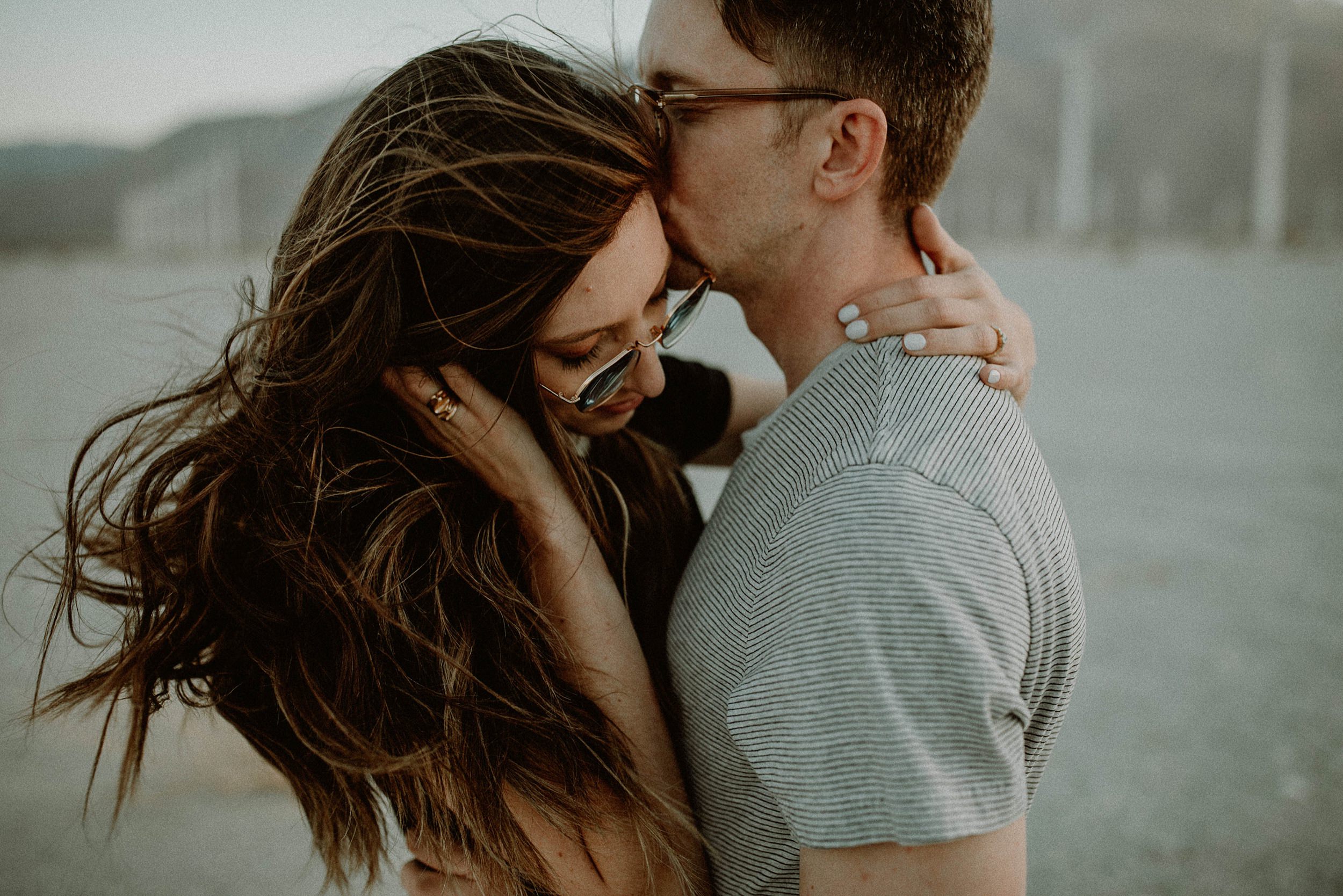 Palm Springs Desert Windmill Engagement Photos // A desert hangout with two of the chillest people is my kind of day. I ventured with Katherine and Greg out to a windmill farm right outside of Palm Springs. It was warm and windy – it is a windmill farm after all. Their laid back vibes a styling lent all the feels for this low key photo sesh. Just the desert wind, the sun on our backs, kicked up dust, and a whole lot of love. What more can we ask for?
