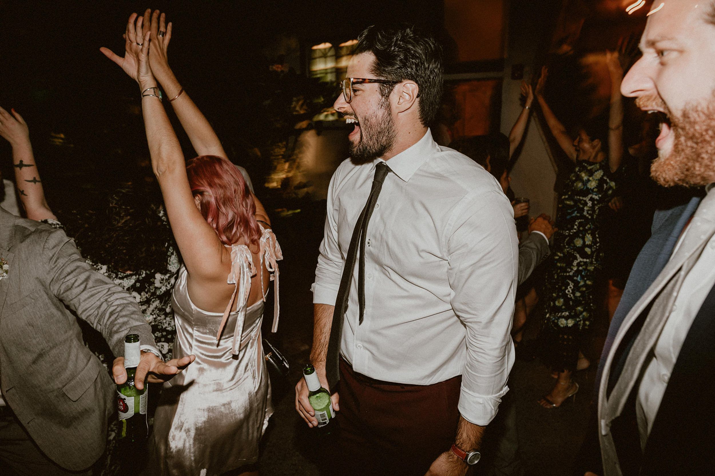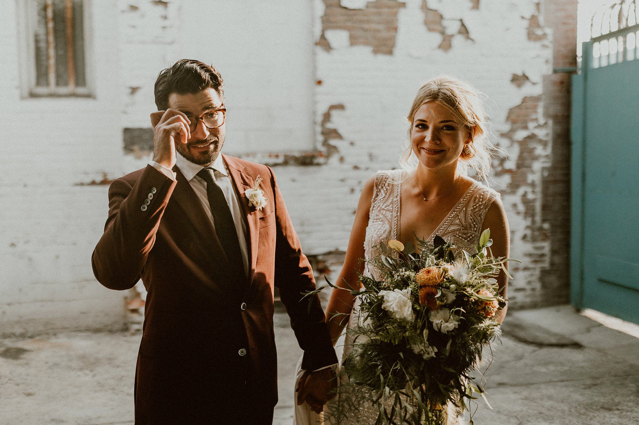 Valentine DTLA Wedding Photos // Jess & Tom are the sweetest and most stylish pair of hip city goers. The two are winemakers living in Portland, and held their wedding at the Marvimon masterpiece, Valentine, in Downtown LA. Their wedding? We think “urban jungle” says it all. They got ready at the NoMad Hotel smack dab in the middle of downtown, had their first look on a busy historic street corner, jumped in a bus with their bridal party and literally played around the Arts District’s concrete jungle for an hour before heading over to the design based jungle that is Valentine.