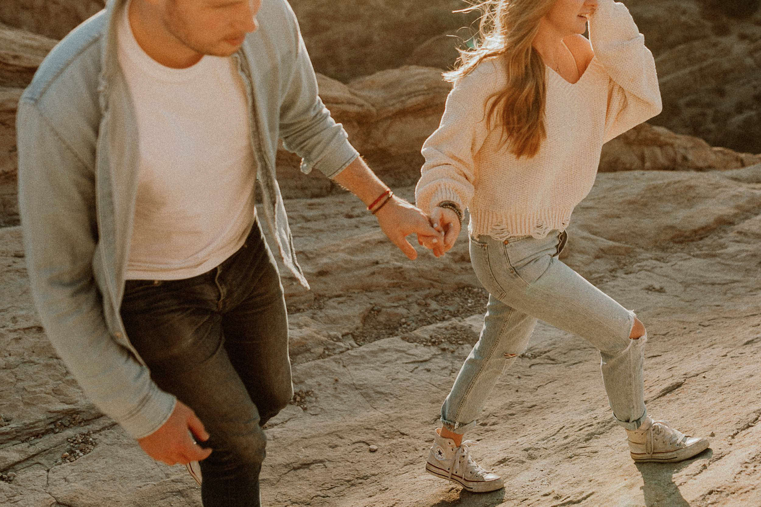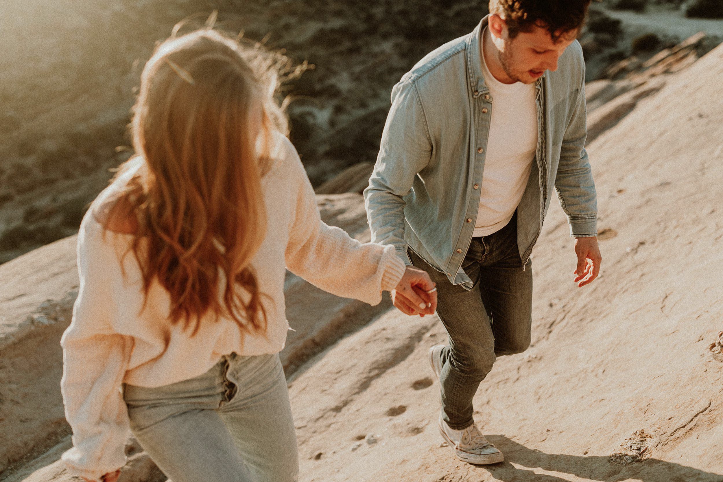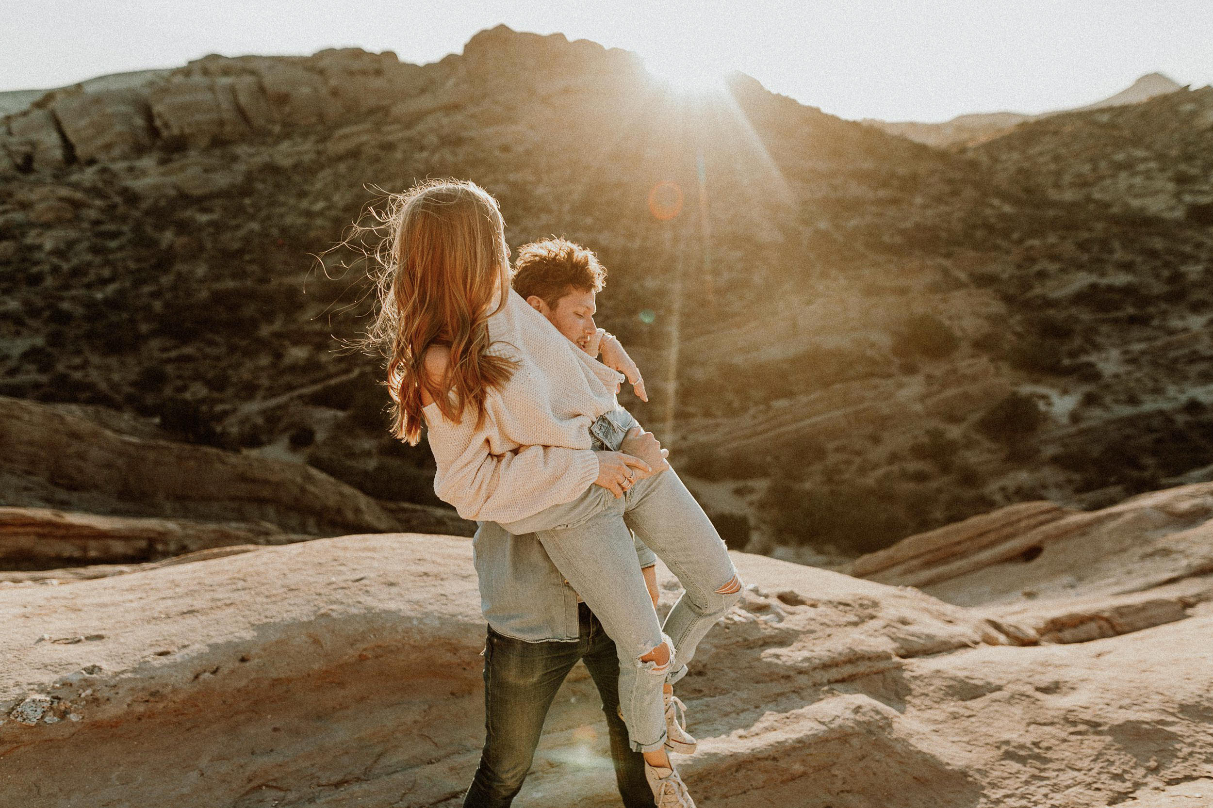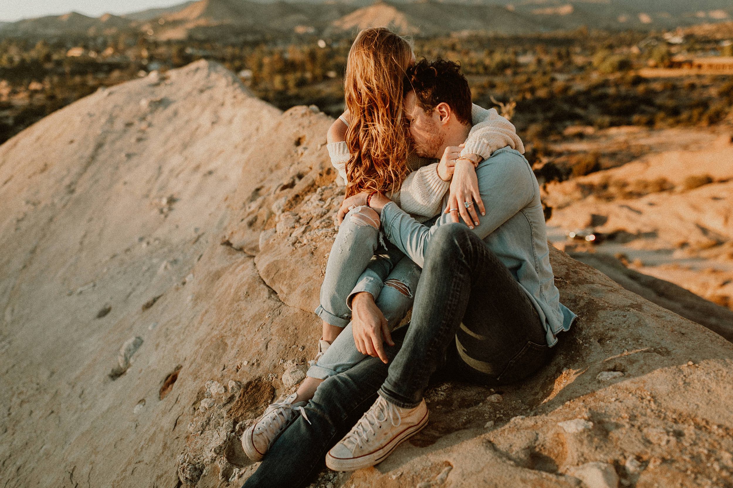 Vasquez Rocks Engagement Photos // This place is unreal. It’s kinda like being on Mars. The story has it that señior Vasquez himself, a legendary bandit in the mid 1800’s, used these geological structures to hideout and evade capture. Jess + Titus wanted to check out this epic landscape for their engagement session location, so we ventured over these wind-swept rock formations together. We hiked up and set our eyes across the jagged valley as I’m sure señior Vasquez did nearly 2 centuries ago. Wild to think about, really, and we can’t wait to return to do it over again.